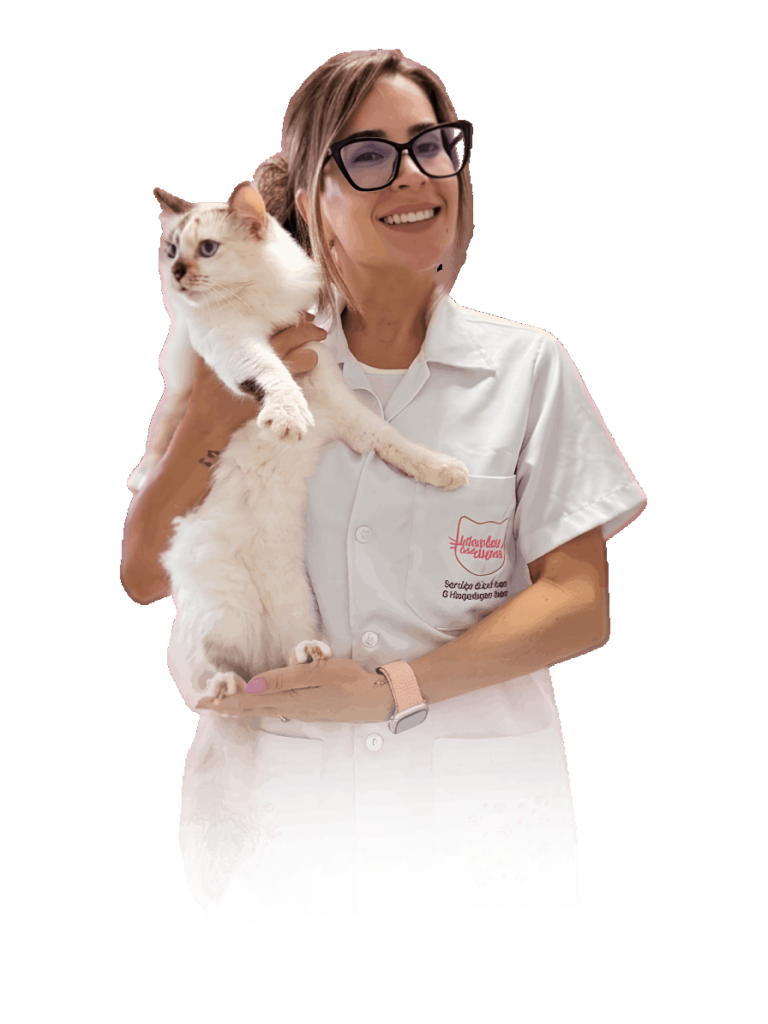 Acompanhamento próximo de profissionais que entendem de comportamento e saúde felina.